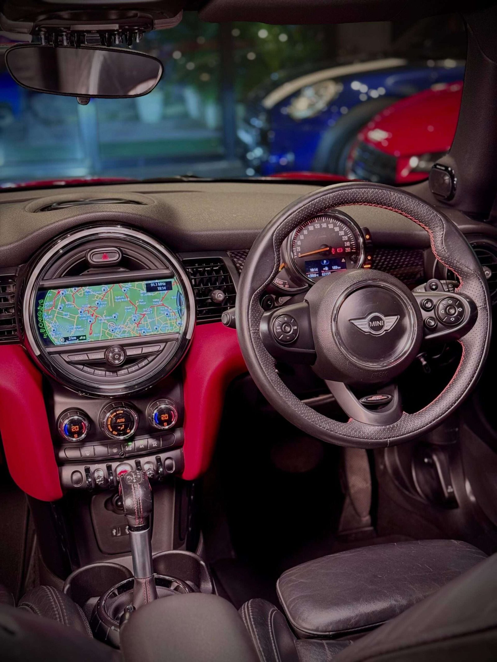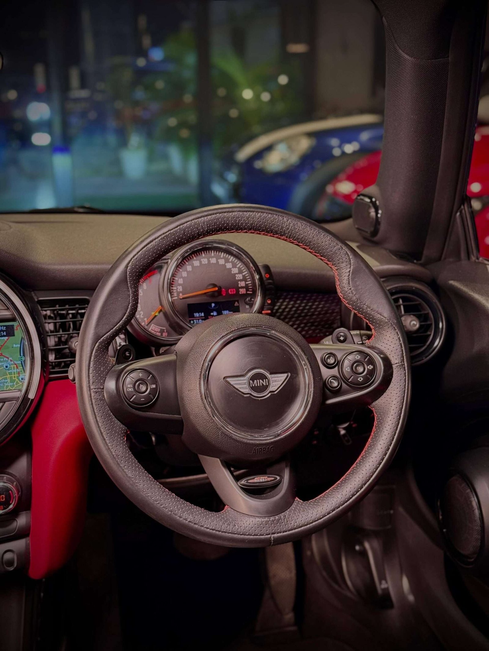 - JCW steering stitched in red